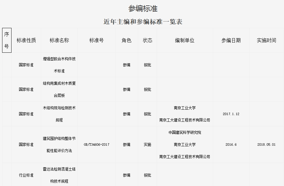 参编标准 近年主编和参编标准一览表